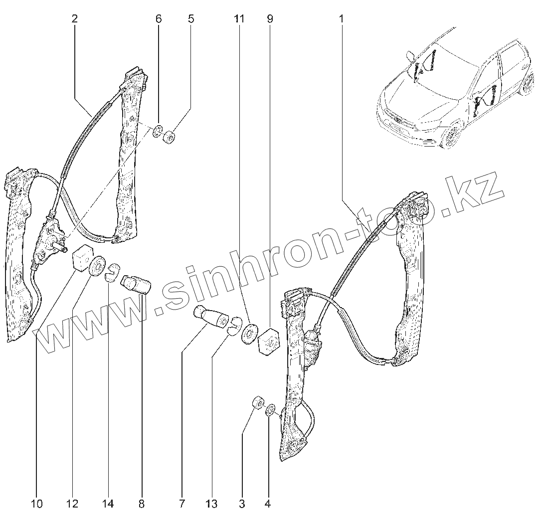 Каталог запасных частей к технике: ВАЗ LADA Granta 2191(Liftback). 506010. СТЕКЛОПОДЪЕМНИКИ ПЕРЕДНИХ ДВЕРЕЙ