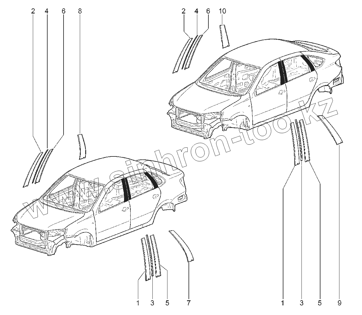 Каталог запасных частей к технике: ВАЗ LADA Granta 2191(Liftback). 554010. НАКЛАДКИ ДВЕРЕЙ