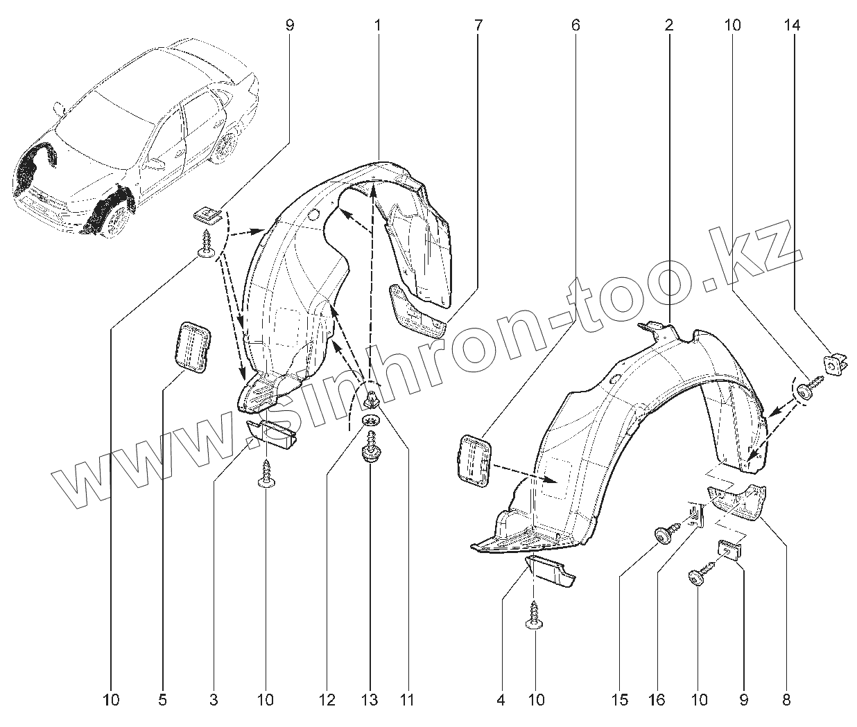 Каталог запасных частей к технике: ВАЗ LADA Granta 2191(Liftback). 564010. ЩИТКИ АРОК КОЛЕС