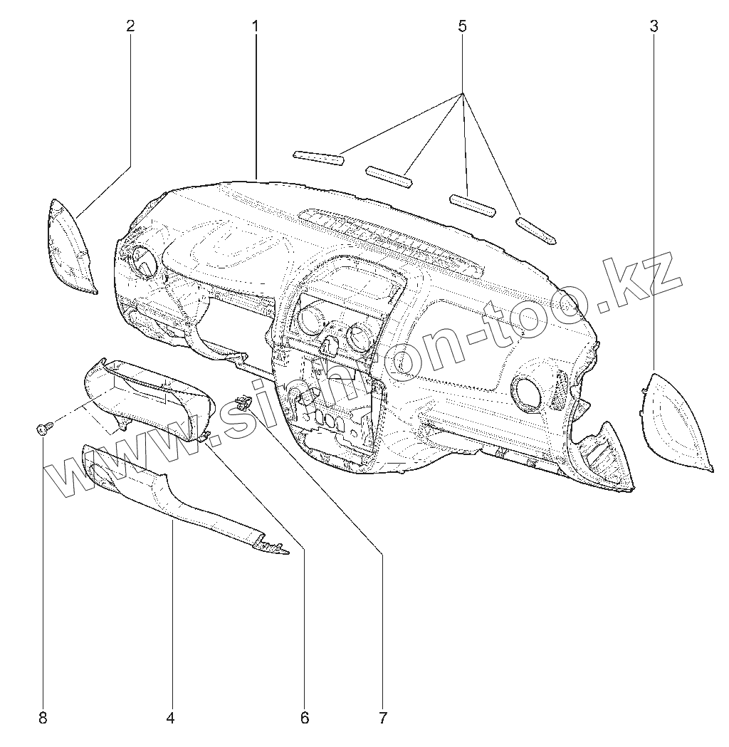 Панель приборов с воздухопроводом в сборе