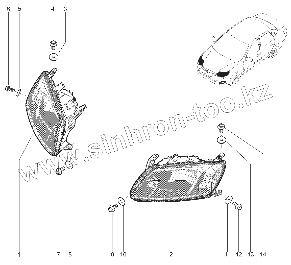 Каталог запасных частей к технике: ВАЗ LADA Granta 2191(Liftback). 802010. ФАРЫ ПЕРЕДНИЕ