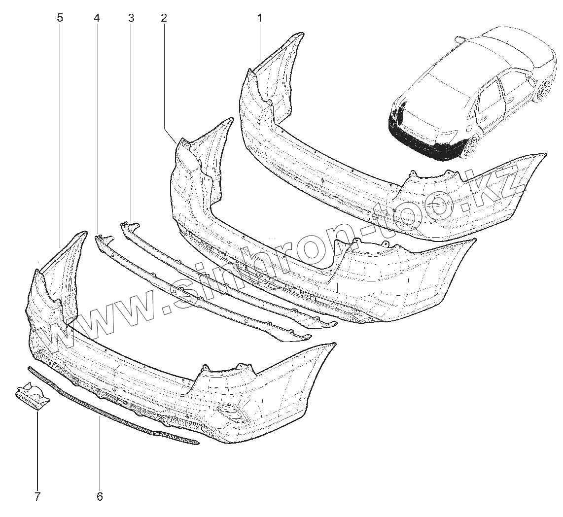 Каталог запасных частей к технике: ВАЗ LADA Granta FL. 551012. БАМПЕР ЗАДНИЙ