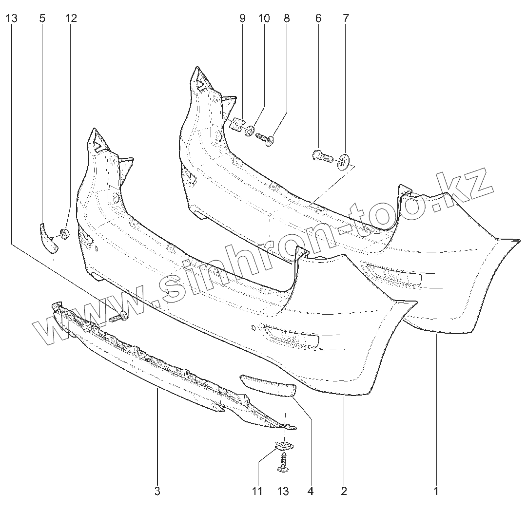 Каталог запасных частей к технике: ВАЗ LADA Granta FL. 551013. БАМПЕР ЗАДНИЙ HB