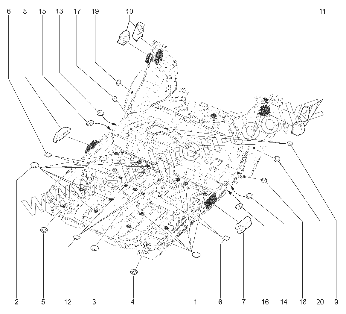 Каталог запасных частей к технике: ВАЗ LADA Granta FL. 640130. ЗАГЛУШКИ ПОЛА САЛОНА