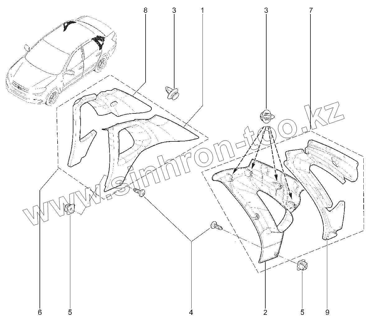 Каталог запасных частей к технике: ВАЗ LADA Granta FL. 710120. ОБИВКИ САЛОНА ЗАДНИЕ LGD