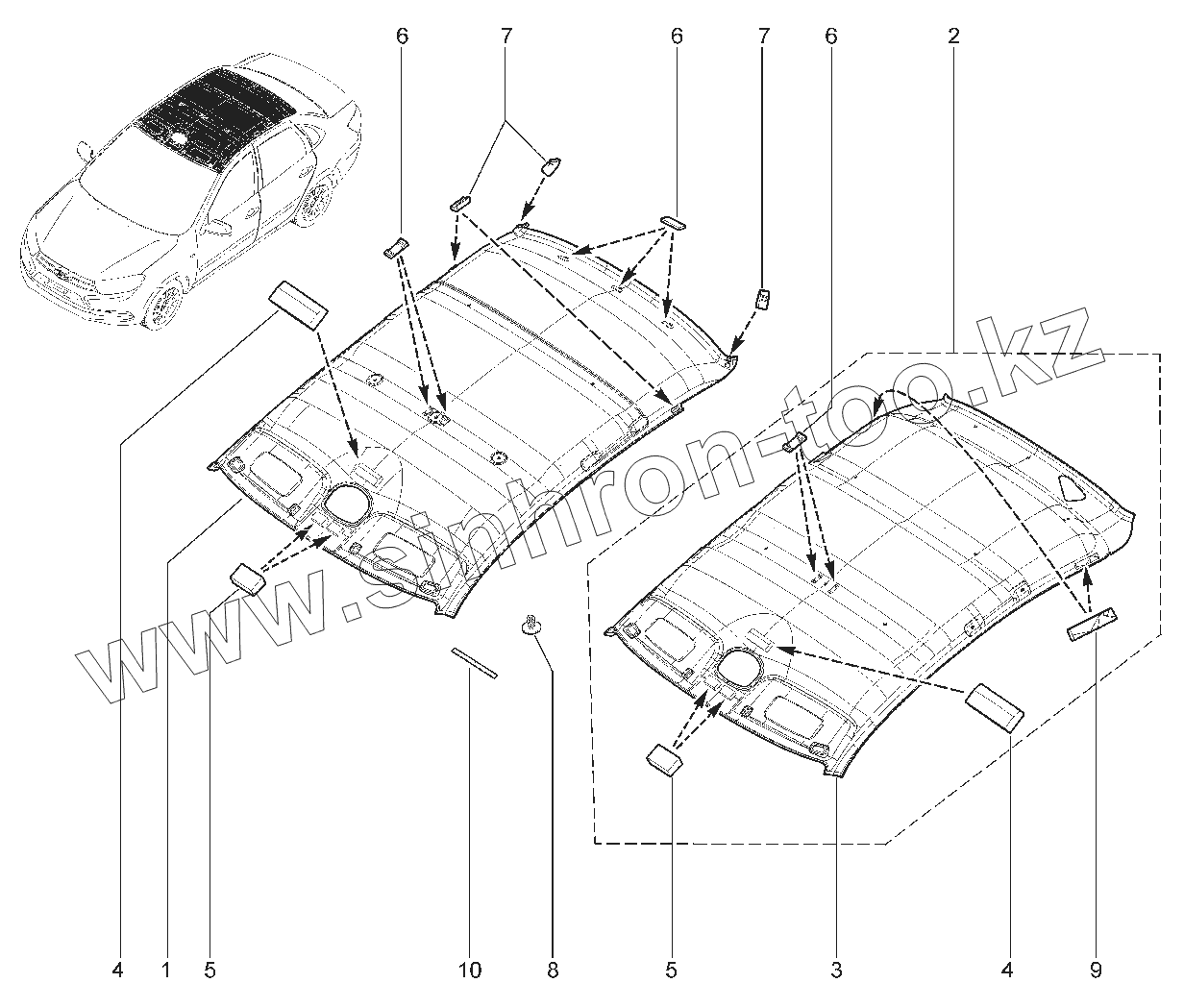 Обивка крыши в сборе
