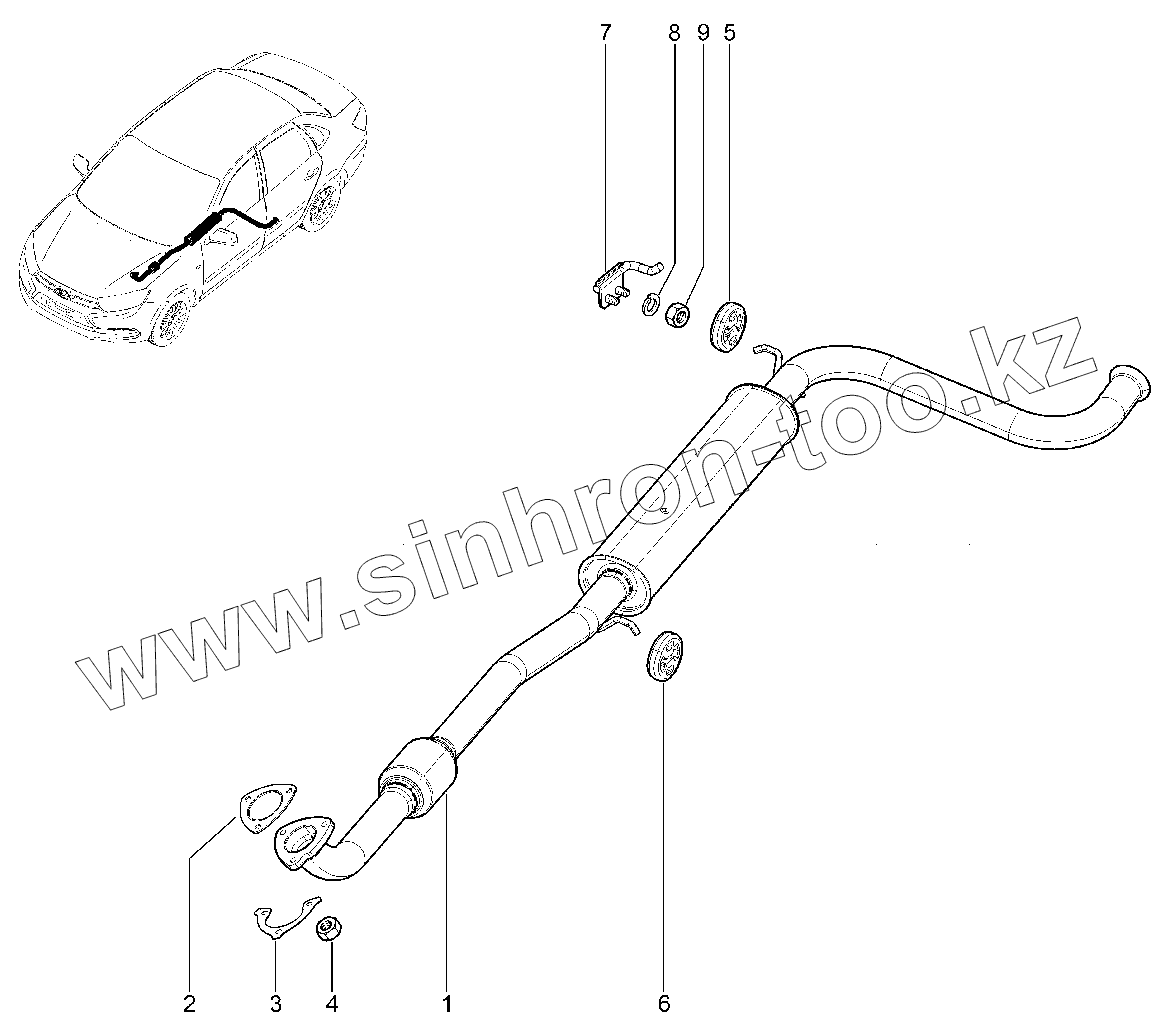Каталог запасных частей к технике: ВАЗ LADA GRANTA FL. Глушитель дополнительный