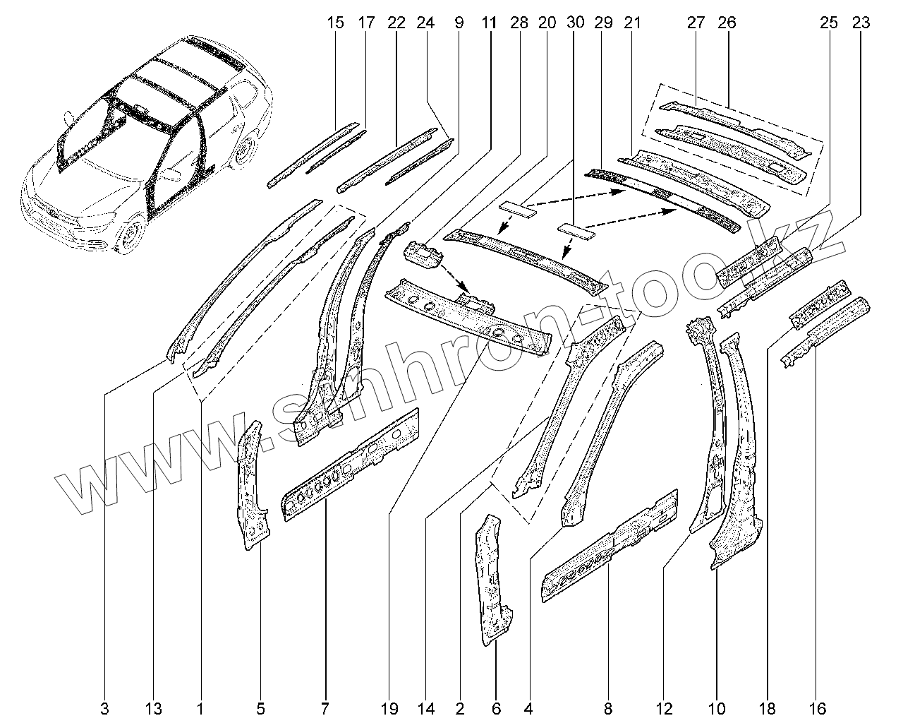 Каталог запасных частей к технике: ВАЗ LADA GRANTA FL. Каркас кузова (хетчбек, универсал)