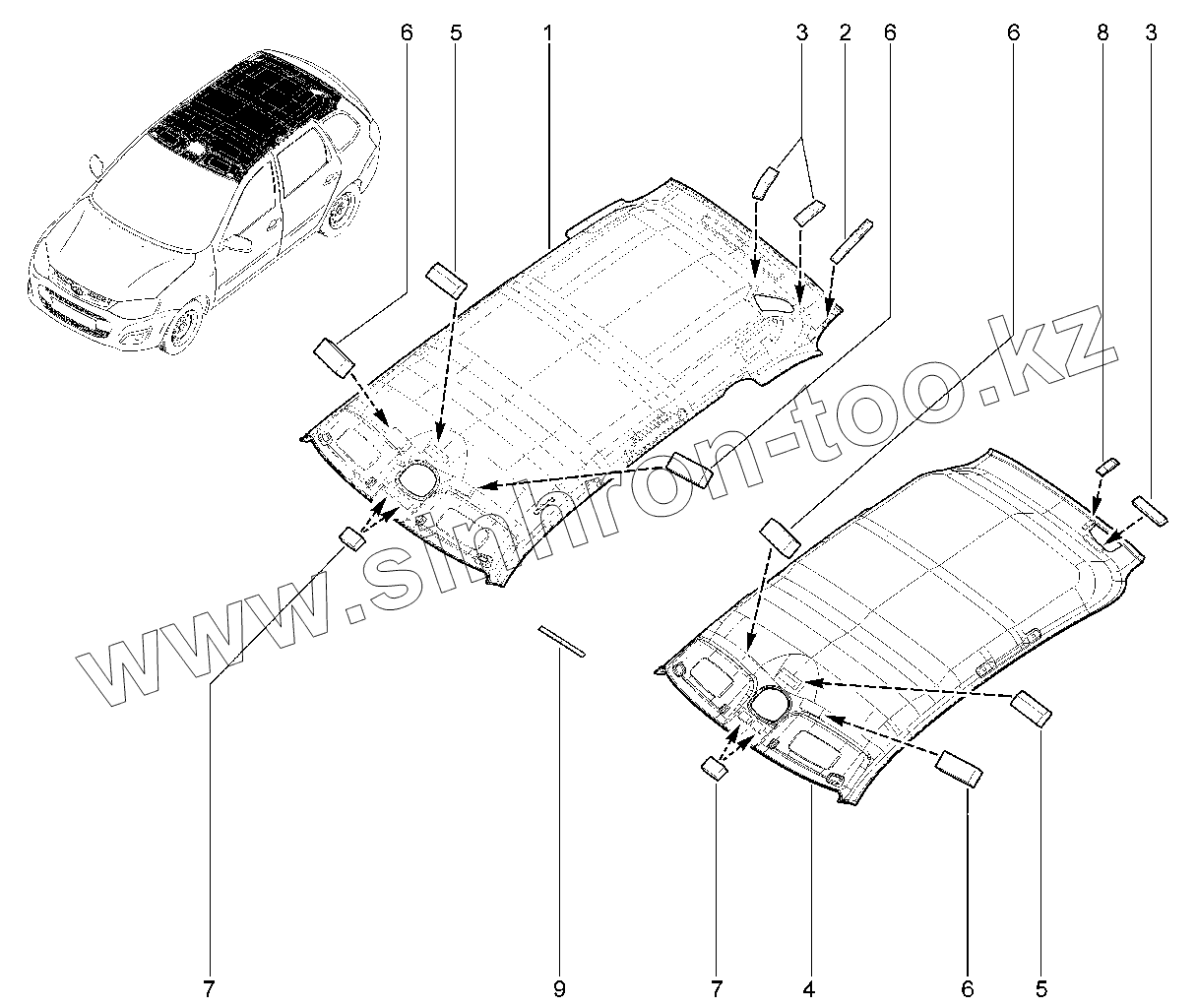 Каталог запасных частей к технике: ВАЗ LADA GRANTA FL. Обивка крыши (хэтчбек,универсал)