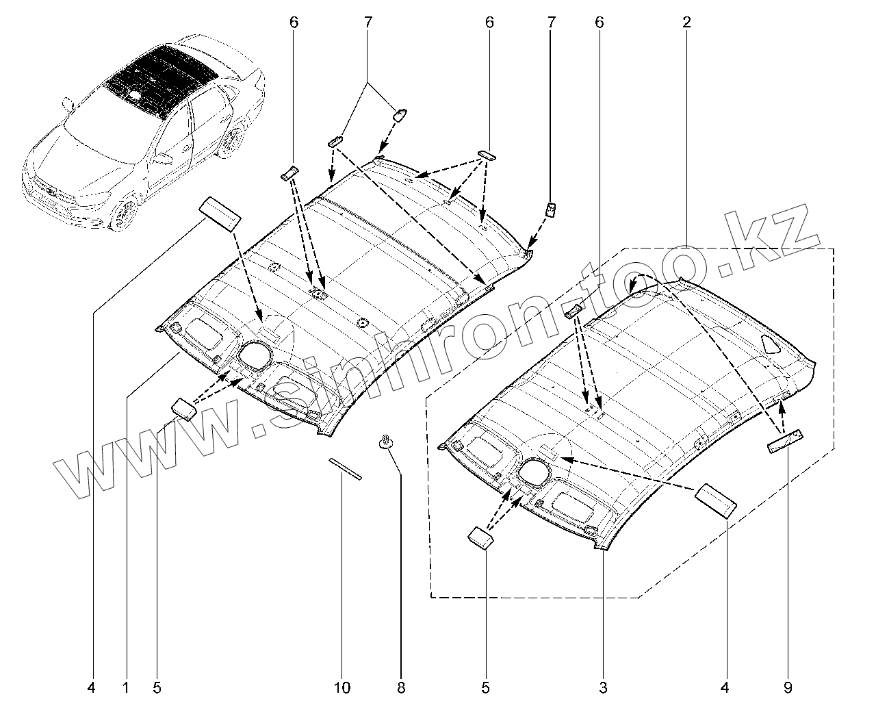 Каталог запасных частей к технике: ВАЗ LADA GRANTA FL. Обивка крыши (седан, лифтбек)