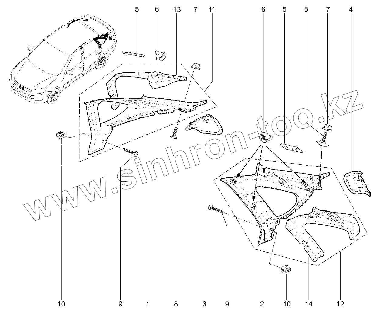 Каталог запасных частей к технике: ВАЗ LADA GRANTA FL. Обивки салона задние (лифтбек)