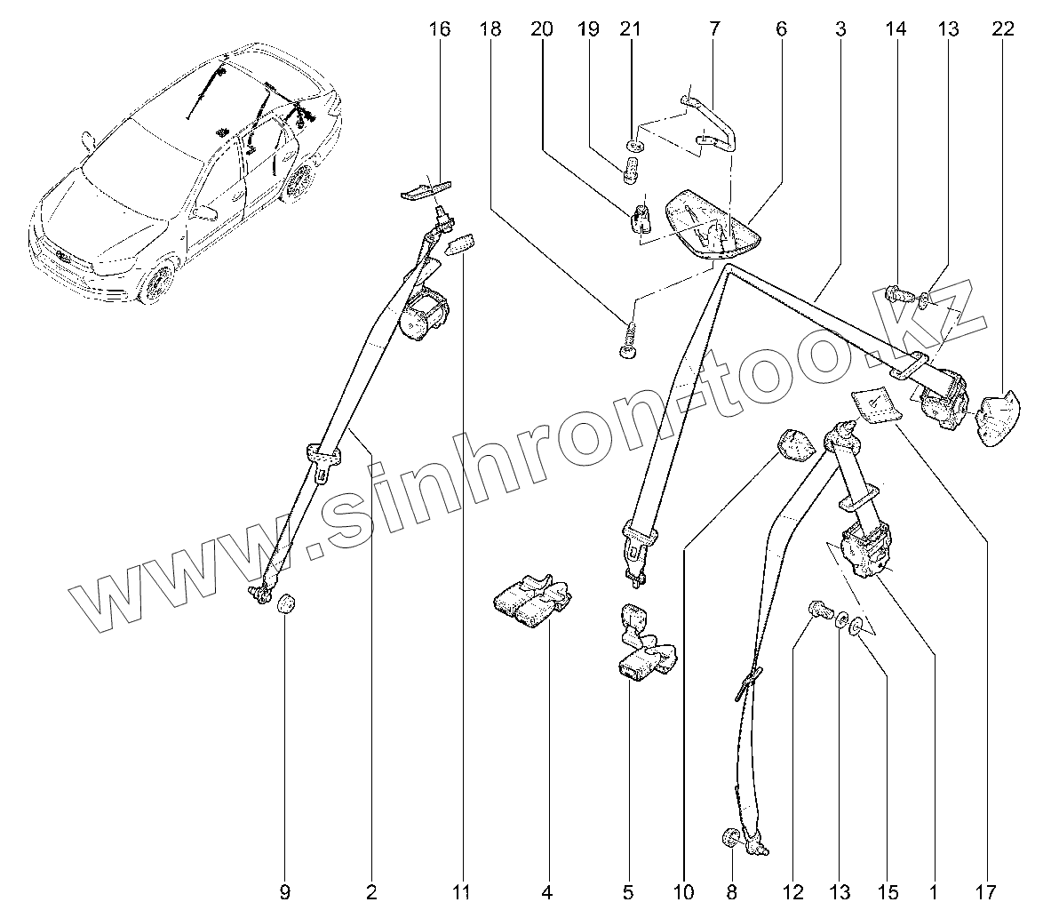Каталог запасных частей к технике: ВАЗ LADA GRANTA FL. Ремни безопасности задние (лифтбек)