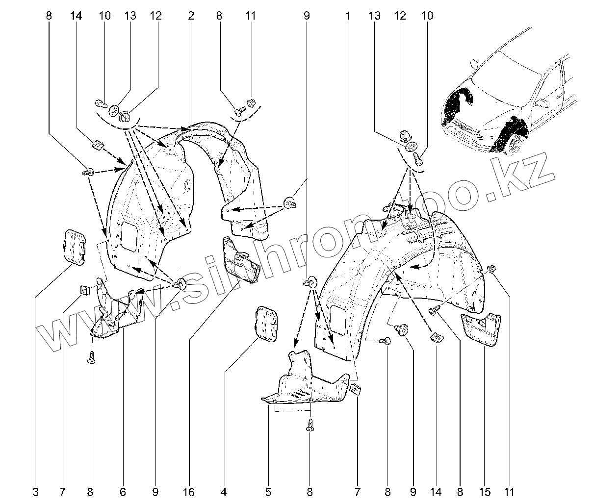 Каталог запасных частей к технике: ВАЗ LADA GRANTA FL. Щитки арок колеса