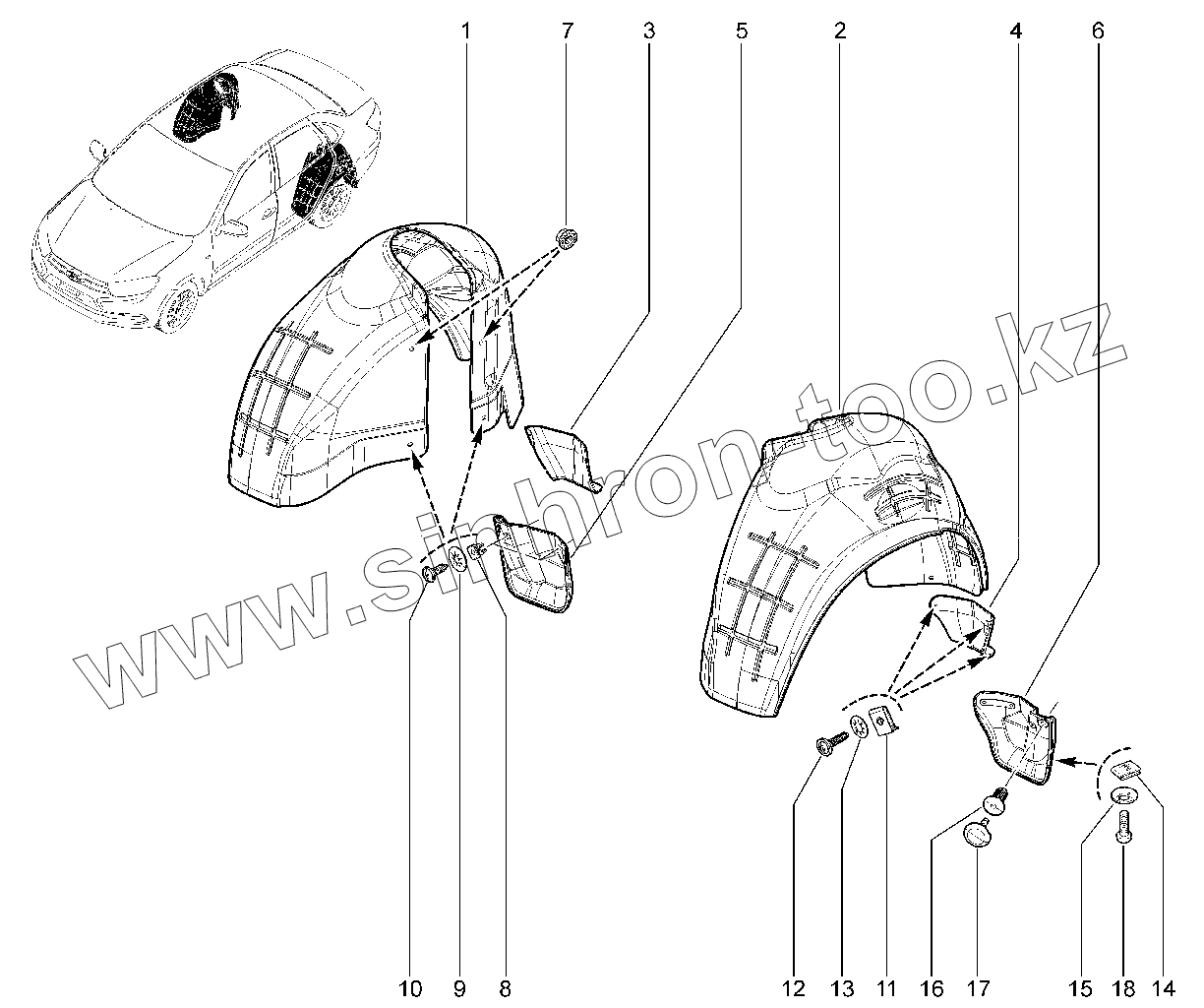 Каталог запасных частей к технике: ВАЗ LADA GRANTA FL. Щиток и фартук заднего крыла