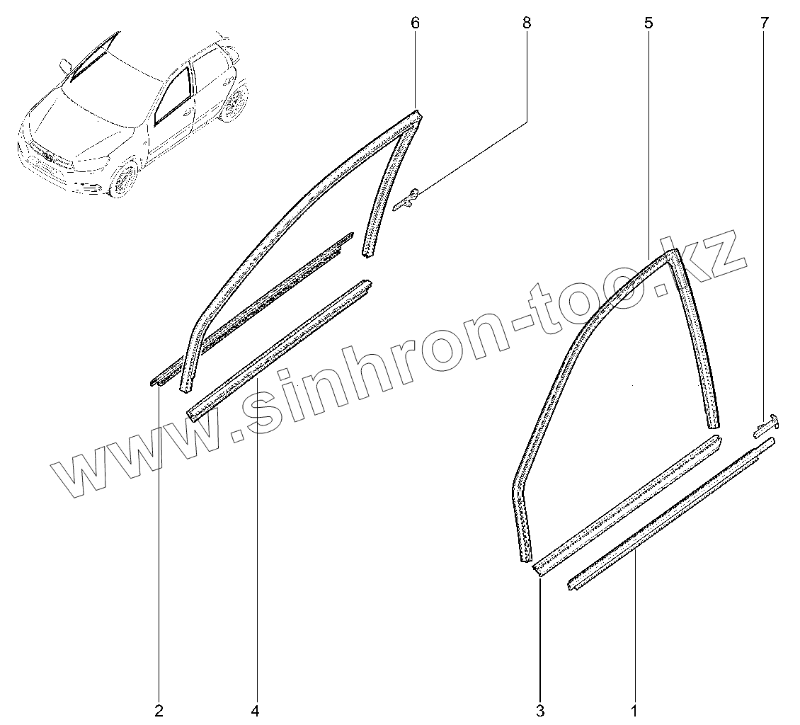 Каталог запасных частей к технике: ВАЗ LADA GRANTA FL. Уплотнители опускного стекла передней двери