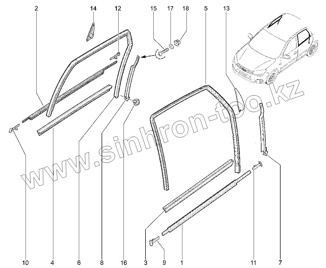 Каталог запасных частей к технике: ВАЗ LADA GRANTA FL. Уплотнители опускного стекла задней двери