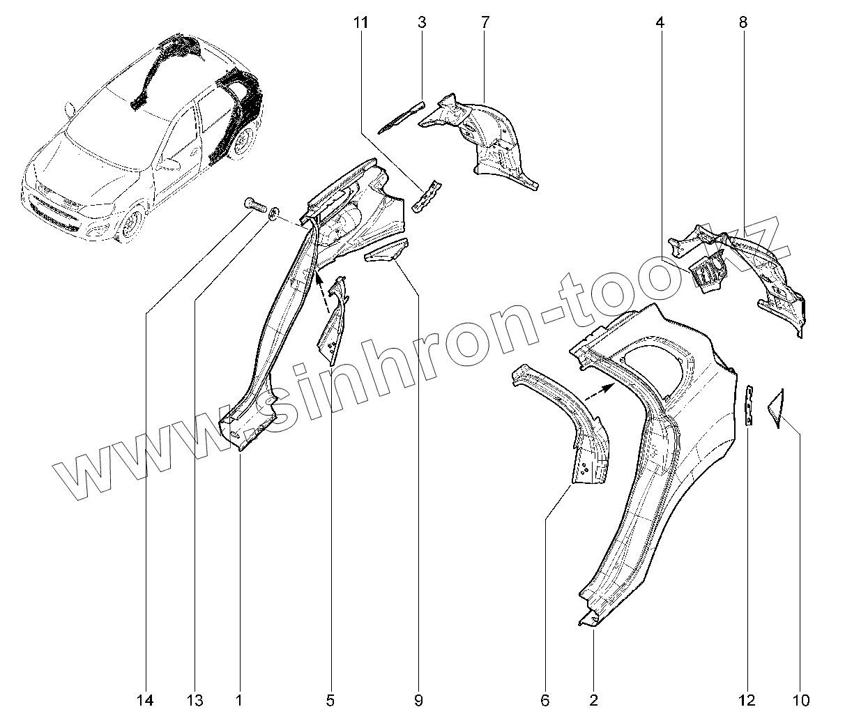 Каталог запасных частей к технике: ВАЗ LADA GRANTA FL. 434310. Крылья задние (хэтчбек)