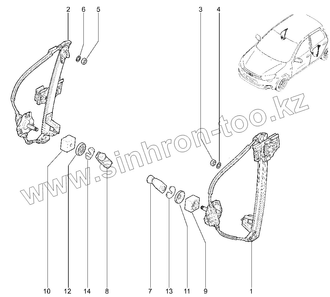 Каталог запасных частей к технике: ВАЗ LADA GRANTA FL. 474010. Механические стеклоподъемники задних дверей