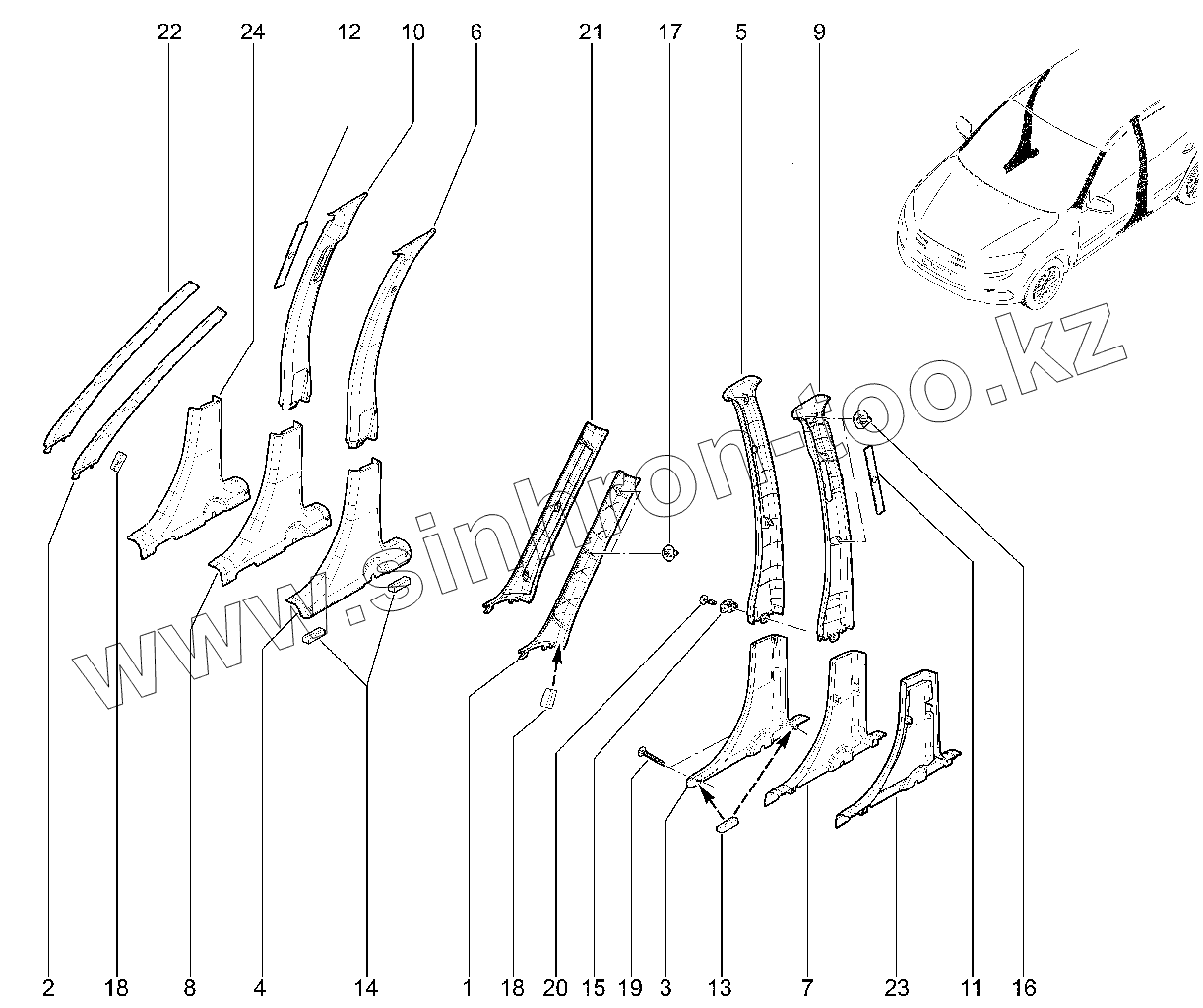 Каталог запасных частей к технике: ВАЗ LADA GRANTA FL. 570110. Обивки стоек