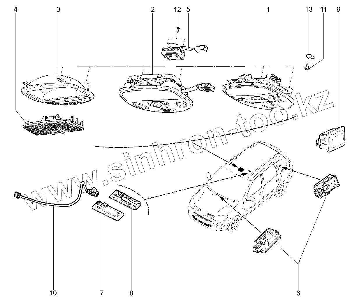 Каталог запасных частей к технике: ВАЗ LADA GRANTA FL. 806110. Плафоны освещения