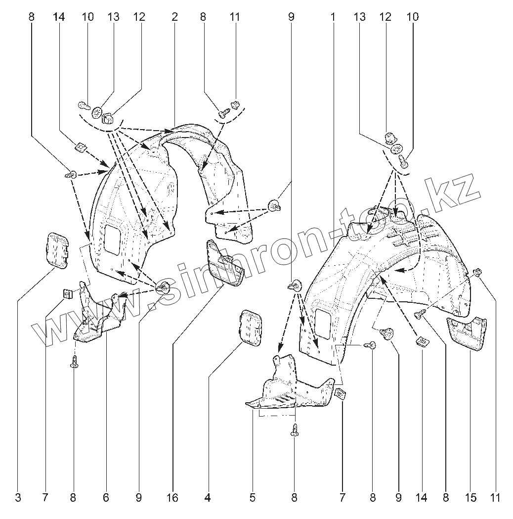 Каталог запасных частей к технике: ВАЗ LADA Granta FL Cross. 564012. ЩИТКИ АРОК КОЛЕСА