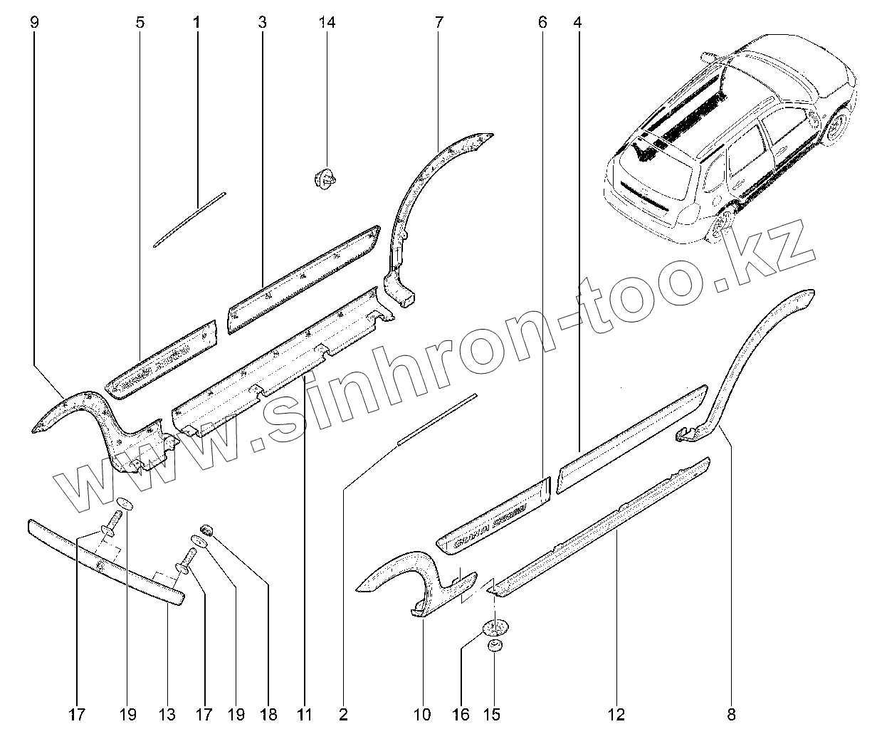 Каталог запасных частей к технике: ВАЗ LADA GRANTA FL CROSS. Молдинги, накладки (Cross)