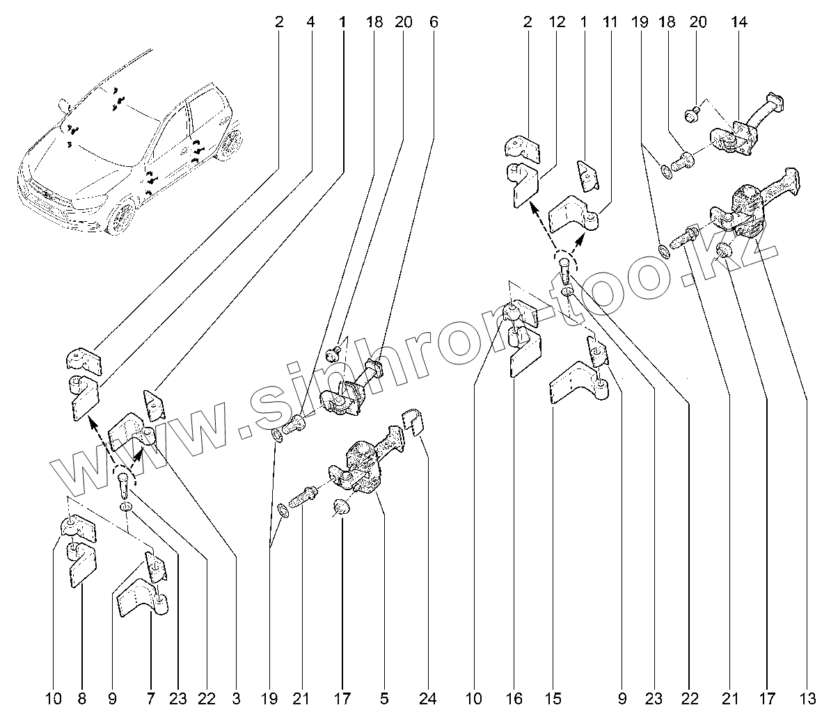 Каталог запасных частей к технике: ВАЗ LADA GRANTA FL CROSS. Петли и ограничители дверей