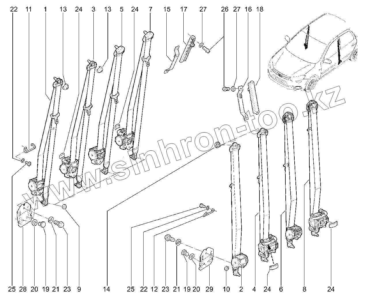 Каталог запасных частей к технике: ВАЗ LADA GRANTA FL CROSS. Ремни безопасности передние