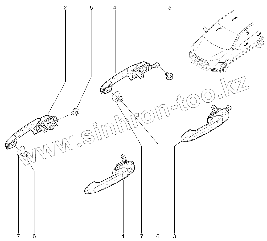 Каталог запасных частей к технике: ВАЗ LADA GRANTA FL CROSS. Ручки дверей наружние