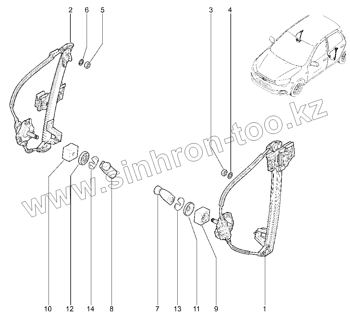 Каталог запасных частей к технике: ВАЗ LADA GRANTA FL CROSS. Стеклоподъемники задних дверей
