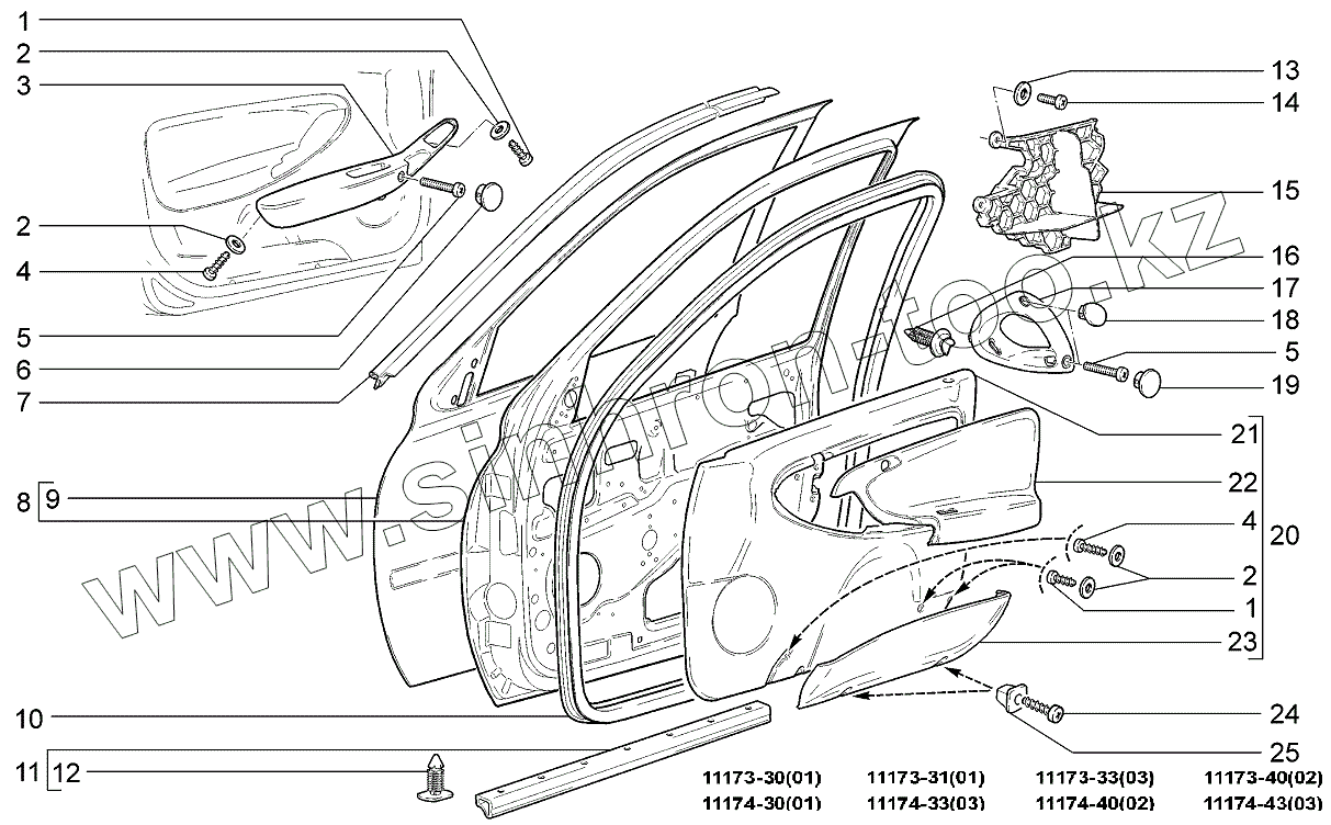 Каталог запасных частей к технике: ВАЗ LADA Kalina 1117. Двери передние