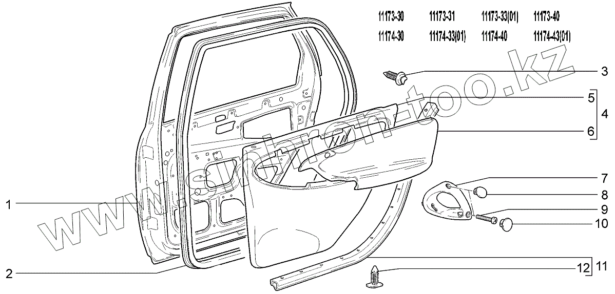 Каталог запасных частей к технике: ВАЗ LADA Kalina 1117. Двери задние