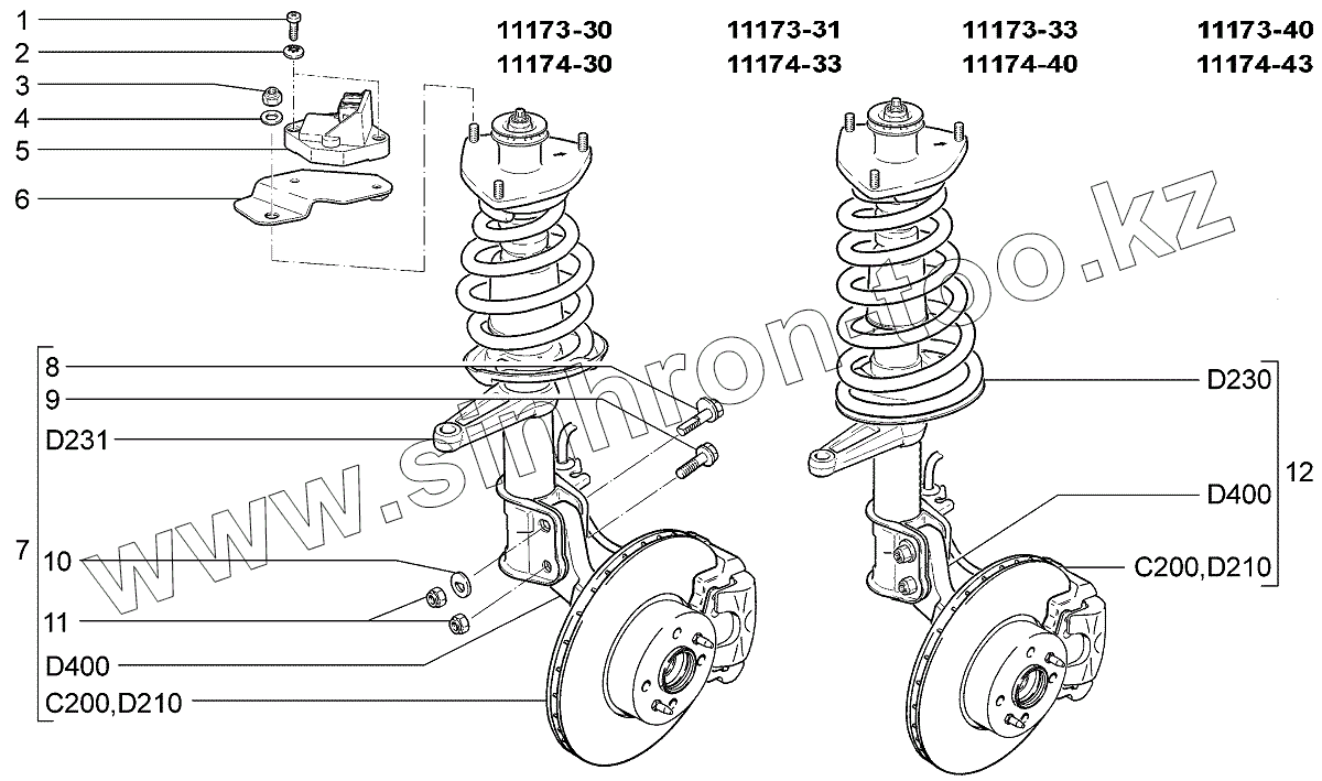 Каталог запасных частей к технике: ВАЗ LADA Kalina 1117. Элементы передней подвески