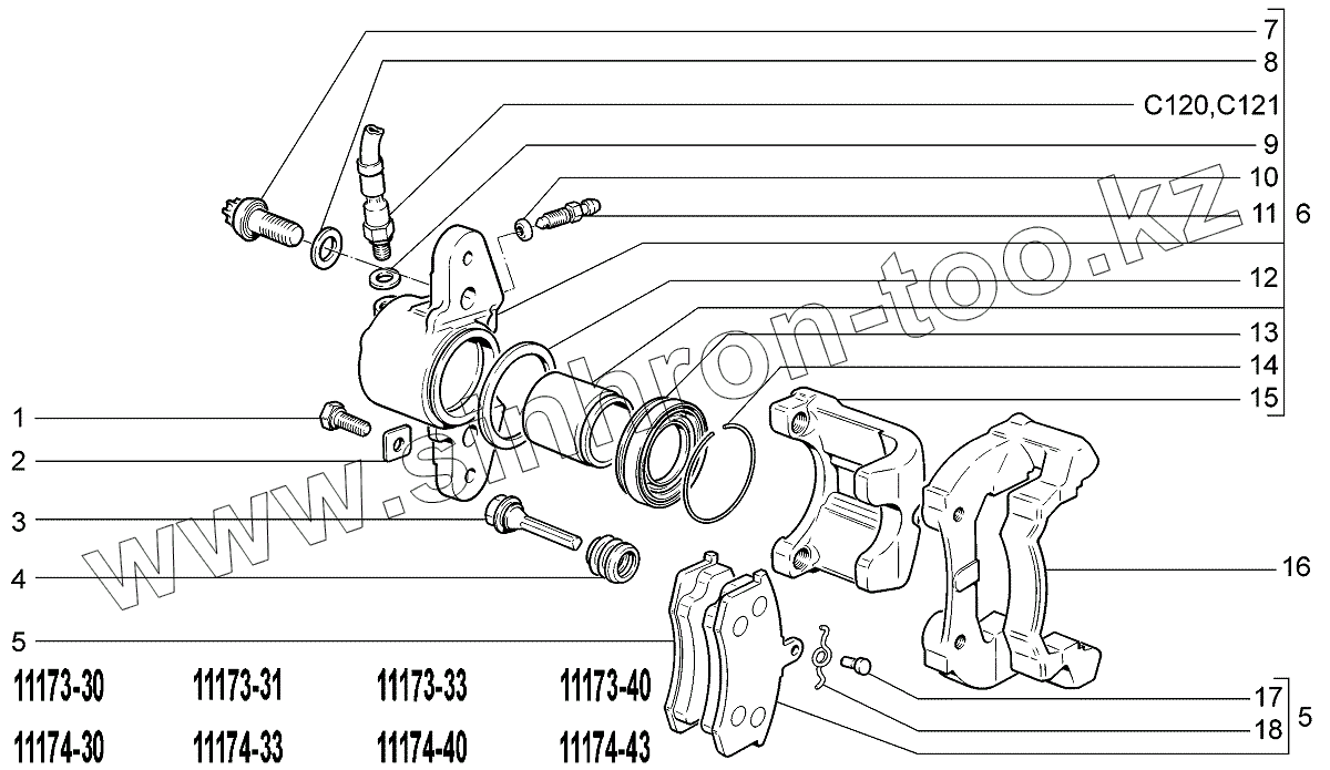 Каталог запасных частей к технике: ВАЗ LADA Kalina 1117. Элементы передних тормозов