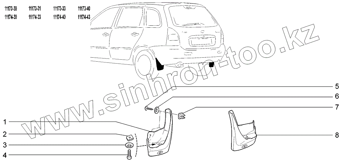 Каталог запасных частей к технике: ВАЗ LADA Kalina 1117. Фартуки