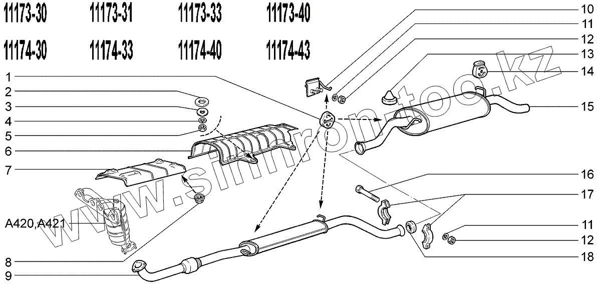Каталог запасных частей к технике: ВАЗ LADA Kalina 1117. Глушители