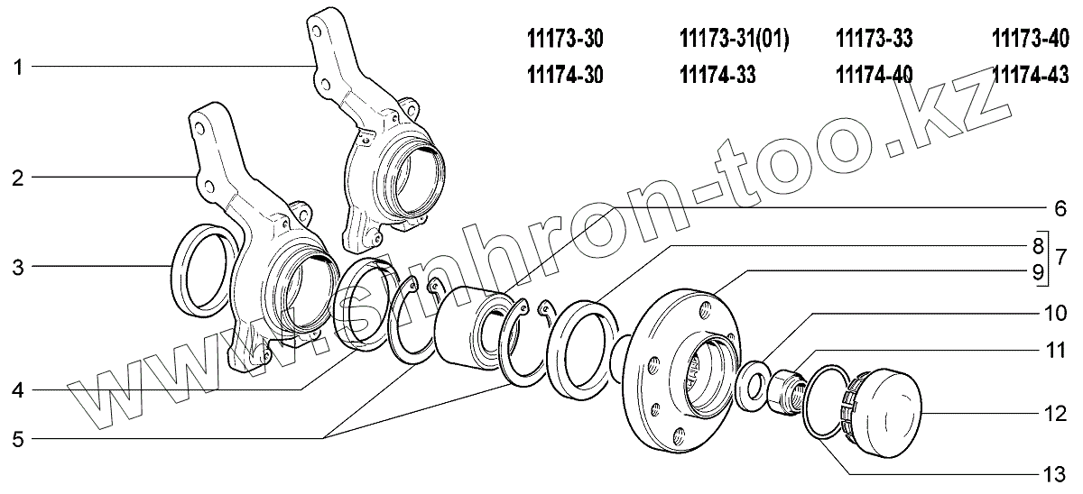 Каталог запасных частей к технике: ВАЗ LADA Kalina 1117. Кулаки поворотные и ступицы