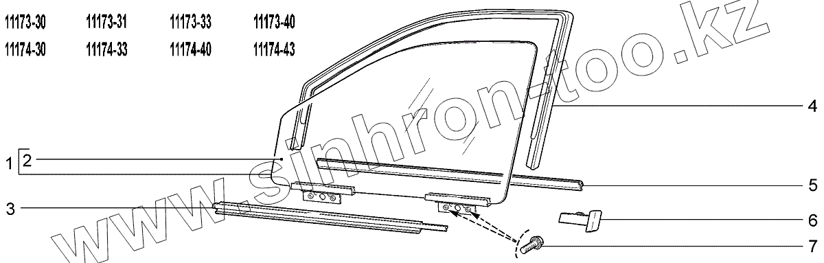 Каталог запасных частей к технике: ВАЗ LADA Kalina 1117. Окна передних дверей