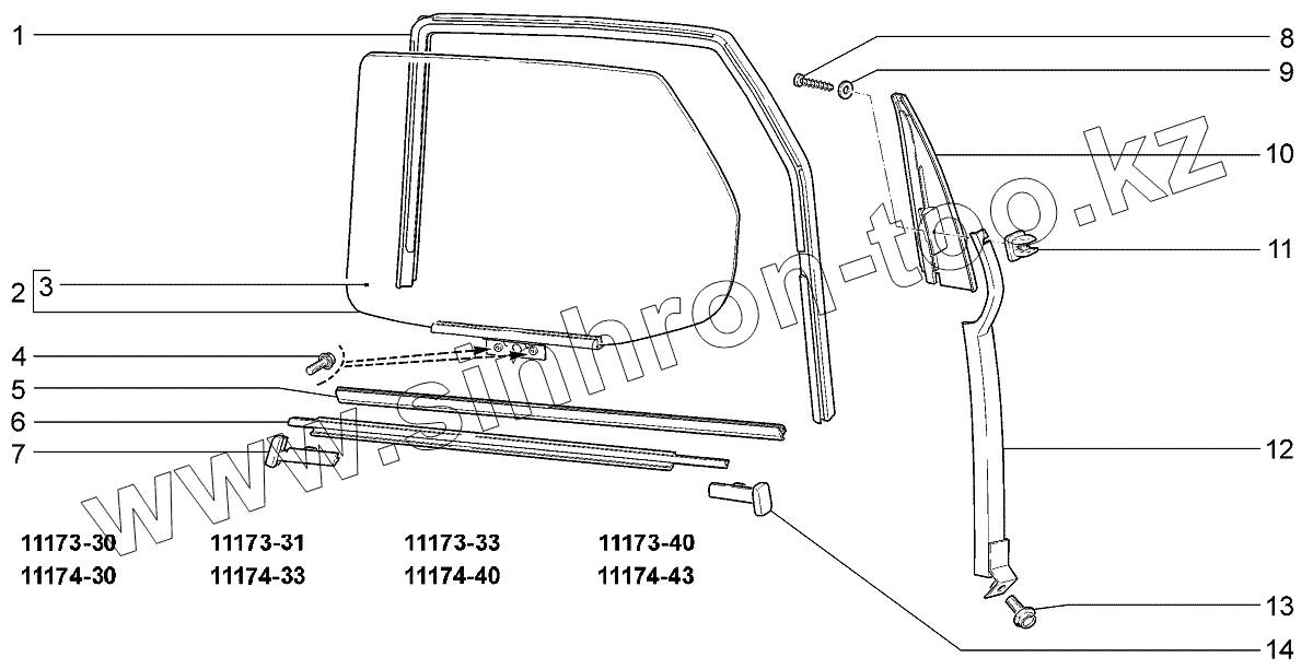 Каталог запасных частей к технике: ВАЗ LADA Kalina 1117. Окна задних дверей