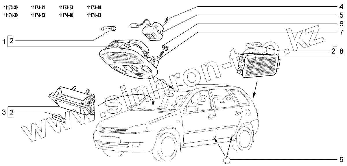 Каталог запасных частей к технике: ВАЗ LADA Kalina 1117. Освещение салона