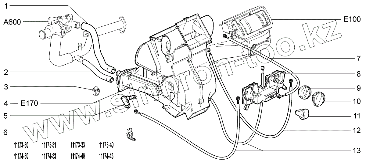 Каталог запасных частей к технике: ВАЗ LADA Kalina 1117. Отопитель с управлением и шлангами