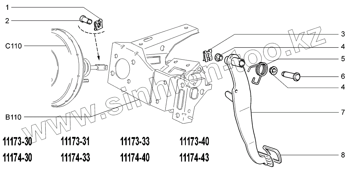 Каталог запасных частей к технике: ВАЗ LADA Kalina 1117. Педаль тормоза