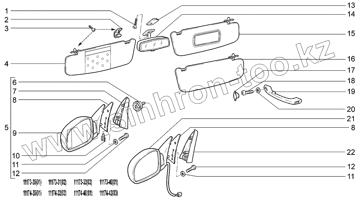 Каталог запасных частей к технике: ВАЗ LADA Kalina 1117. Принадлежности салона