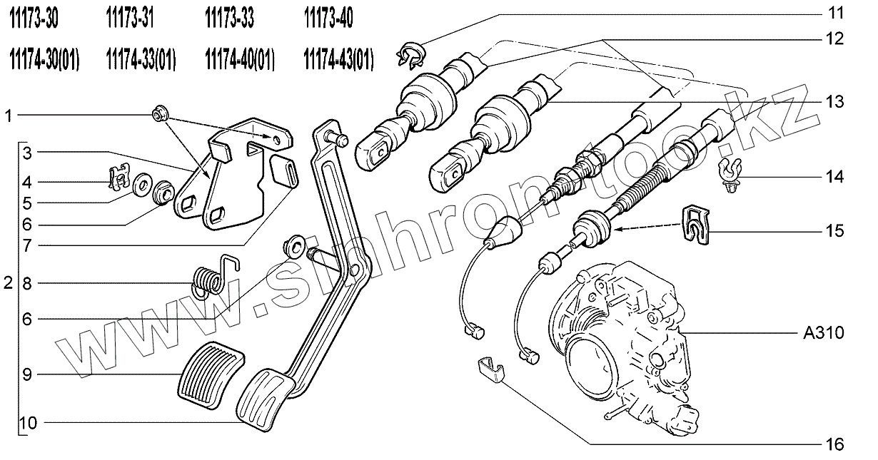 Каталог запасных частей к технике: ВАЗ LADA Kalina 1117. Привод акселератора