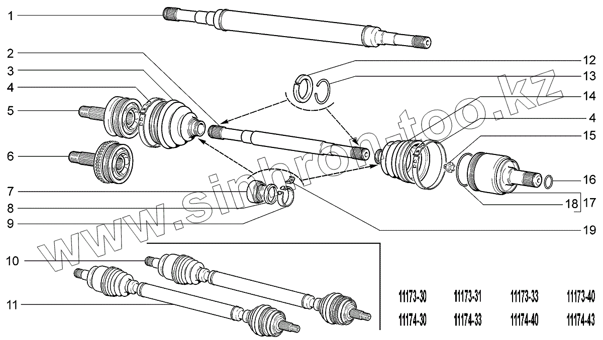 Каталог запасных частей к технике: ВАЗ LADA Kalina 1117. Привод передних колес