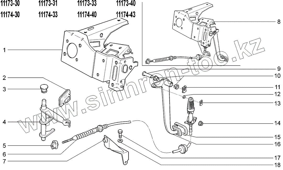 Каталог запасных частей к технике: ВАЗ LADA Kalina 1117. Привод сцепления