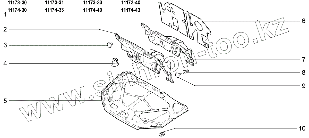 Каталог запасных частей к технике: ВАЗ LADA Kalina 1117. Шумоизоляция моторного отсека
