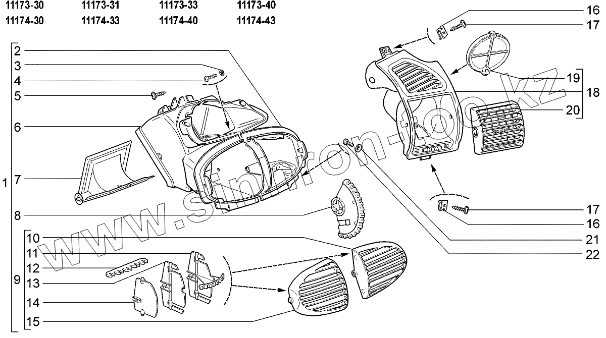 Каталог запасных частей к технике: ВАЗ LADA Kalina 1117. Сопла вентиляции кузова