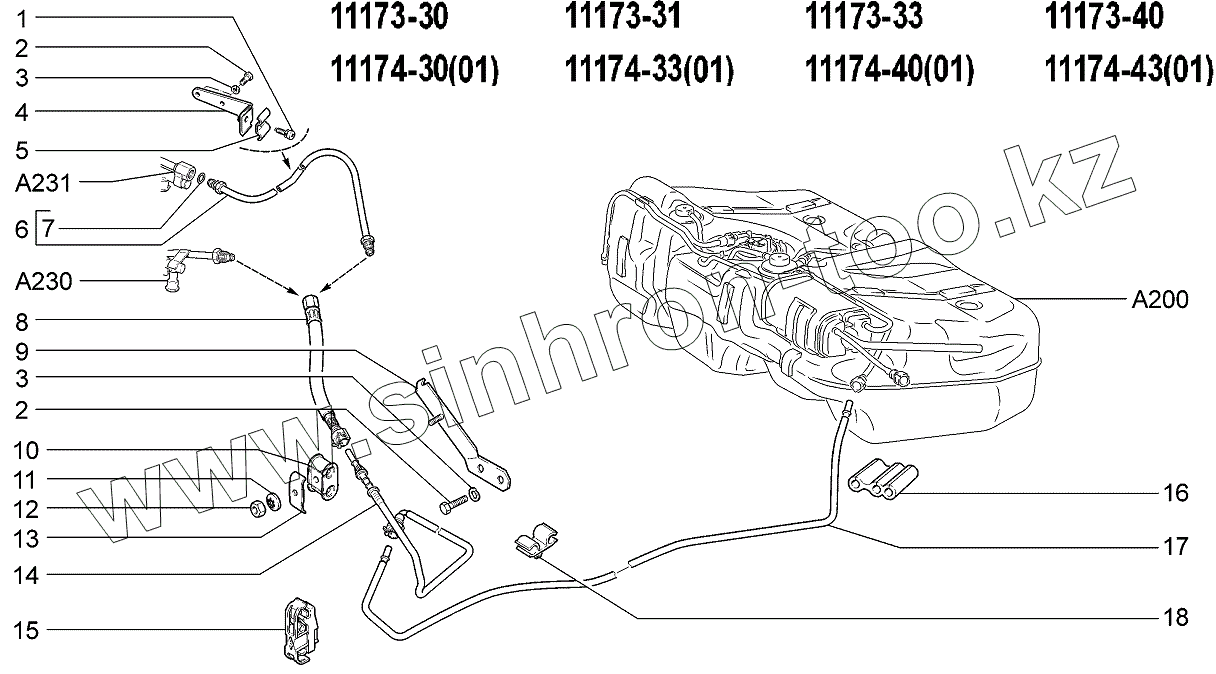 Каталог запасных частей к технике: ВАЗ LADA Kalina 1117. Трубопроводы топливные