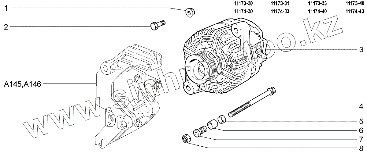 Каталог запасных частей к технике: ВАЗ LADA Kalina 1117. Установка генератора